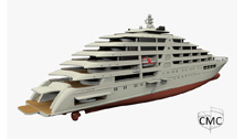 Luxury Cruise Ship concept development for limited number unusual large cabin apartments with extended leisure facility. |